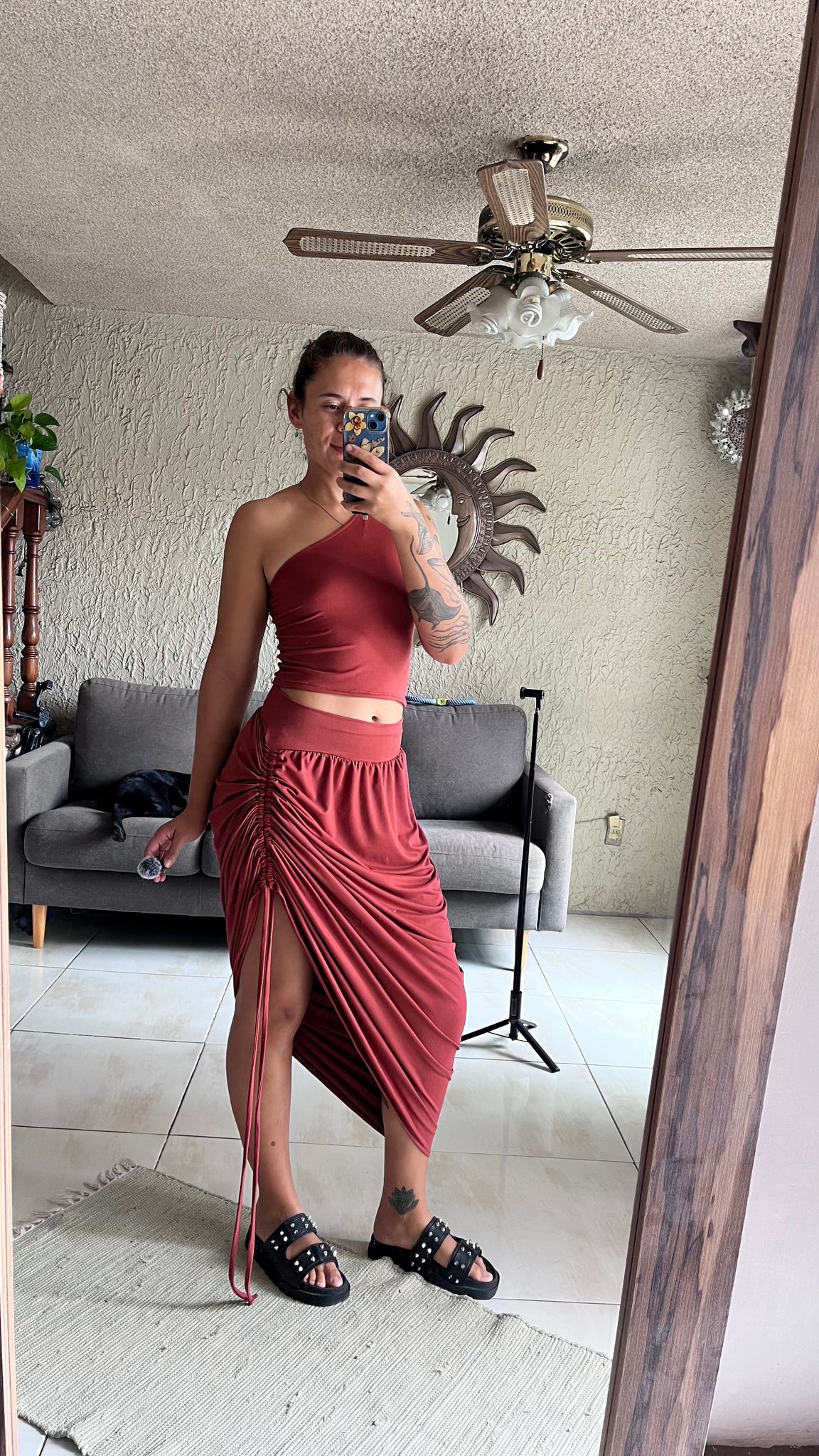 Falda unitalla hecha de nuestro suave y amigable textil brush. Esta falda viene a revolucionarte puedes usarla como falda , en todas sus versiones , larga , corta y corta de un lado o como vestido y blusa al mismo tiempo!! Ya que las tiras de los costados te dejan acomodarla de la mejor manera y como sea más práctico para ti!