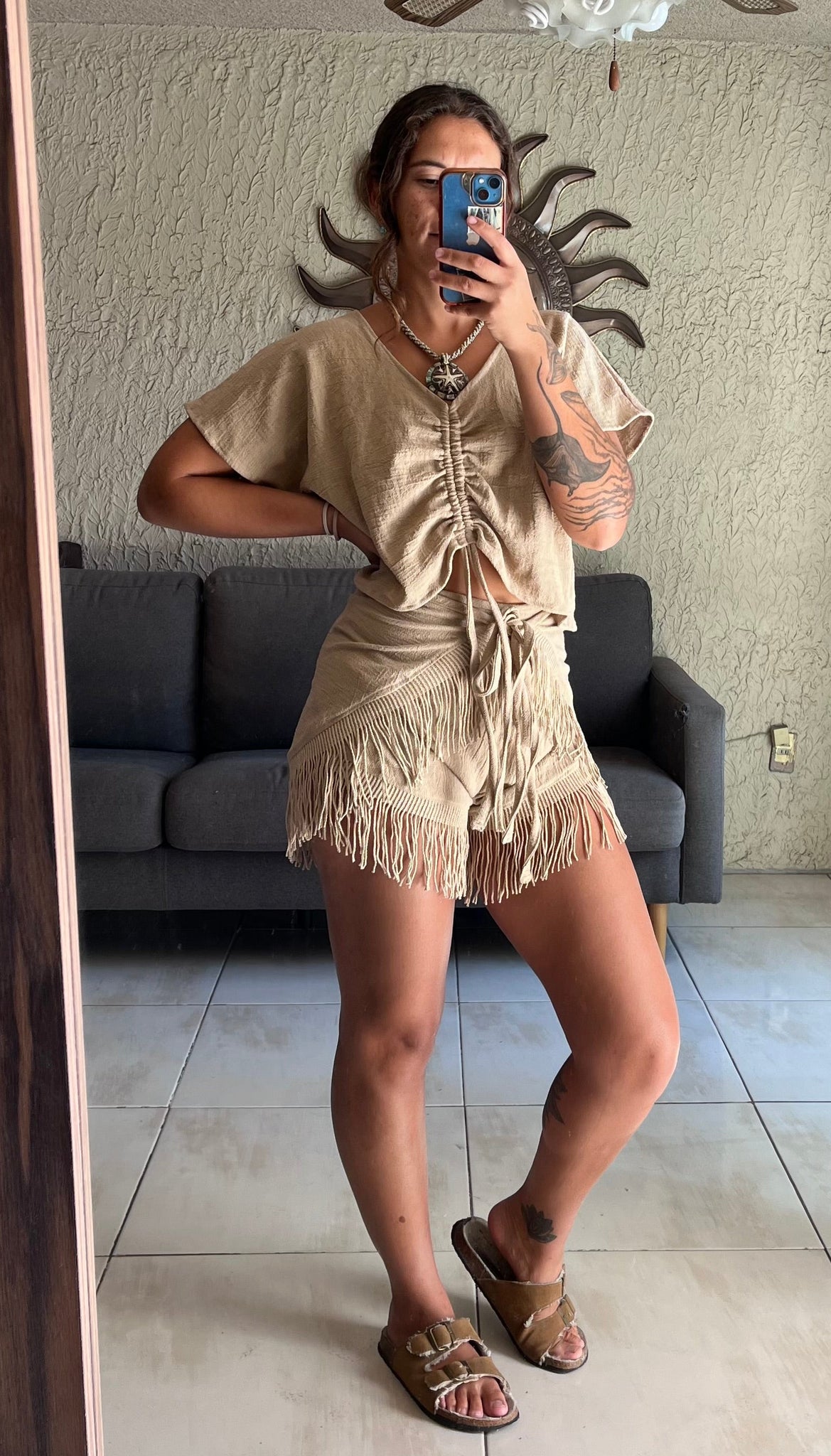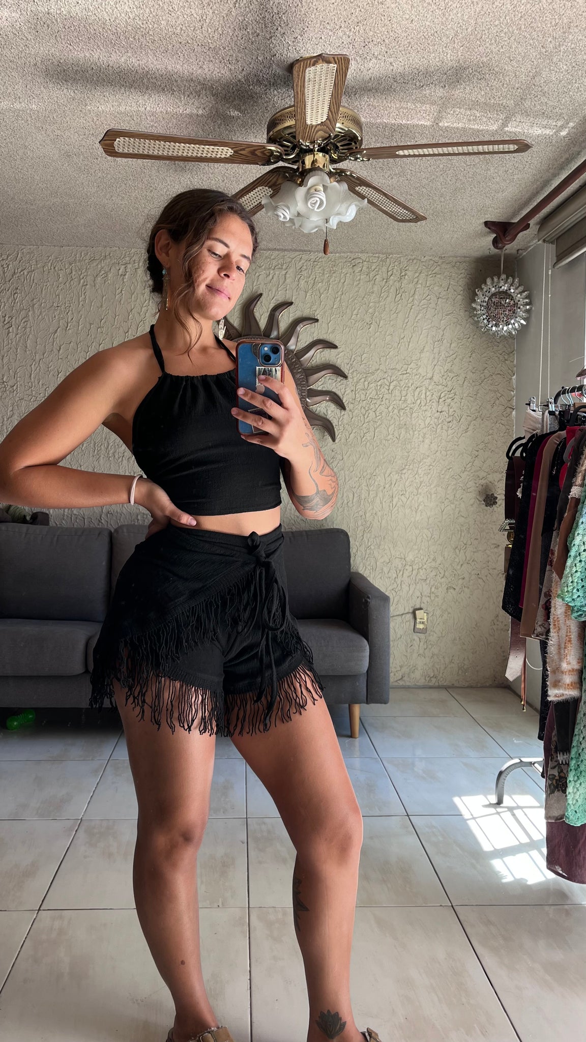Short envolvente de manta artesanal con flecos en algodón. Ideal para tallas XS, S y M