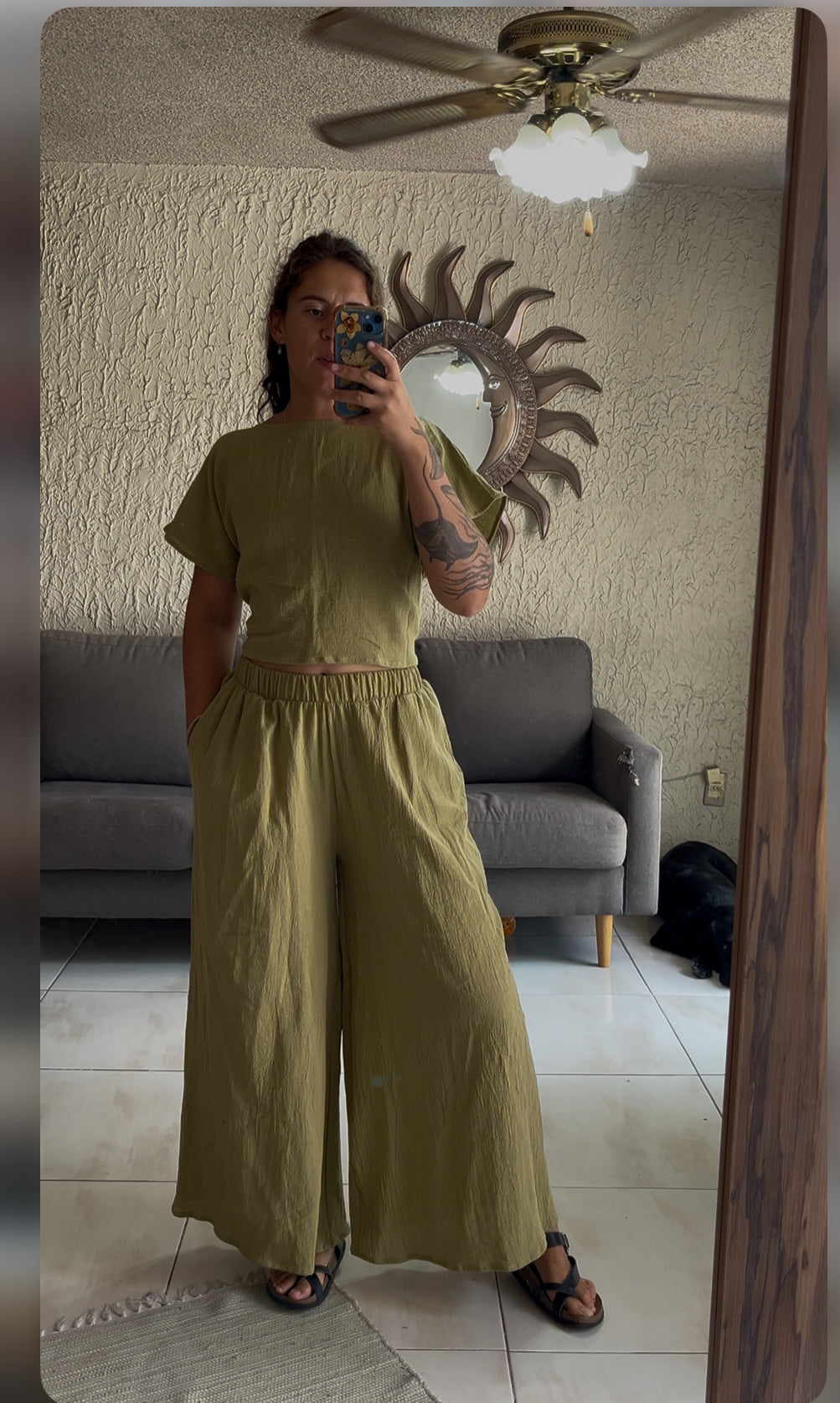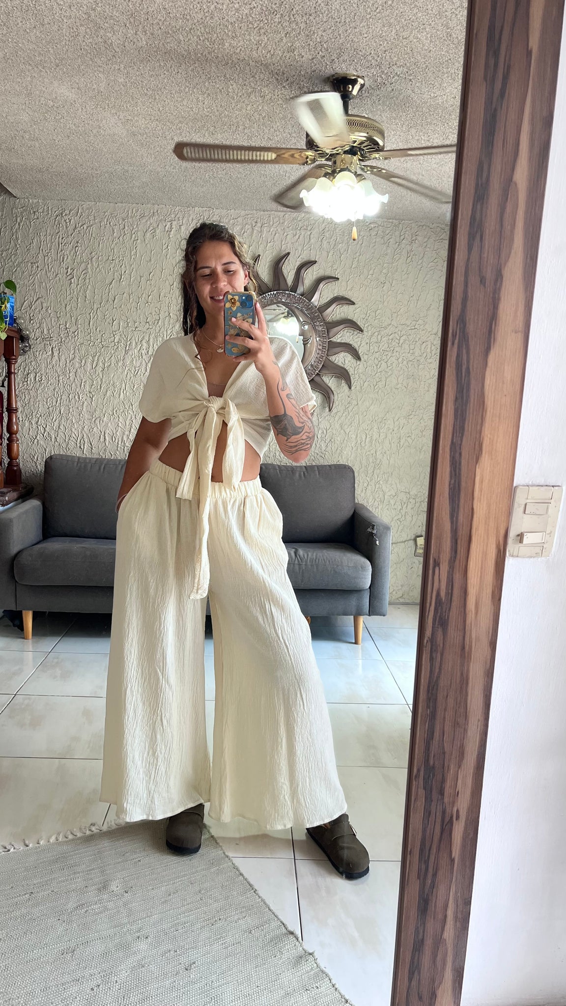 Conjunto de manta artesanal 100% algodón unitalla la blusa es ajustable y el pantalón tiene bastante tela en piernas y caderas , cuenta con bolsas laterales y la blusa tiene más de 5 formas de usarse!! Será tu mejor aliado