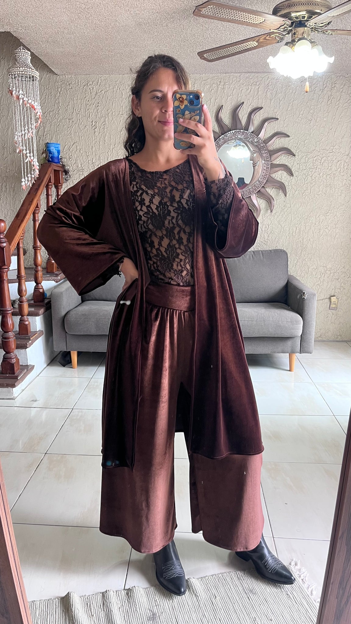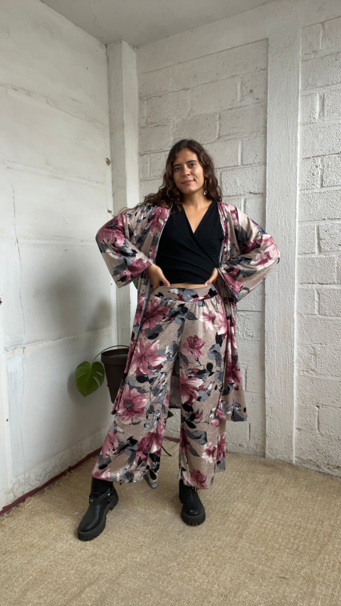 Conjunto de pantalón recto con kimono de corte básico de terciopelo 😍perfecto e ideal para esta temporada de otoño invierno, ambas piezas son unitalla