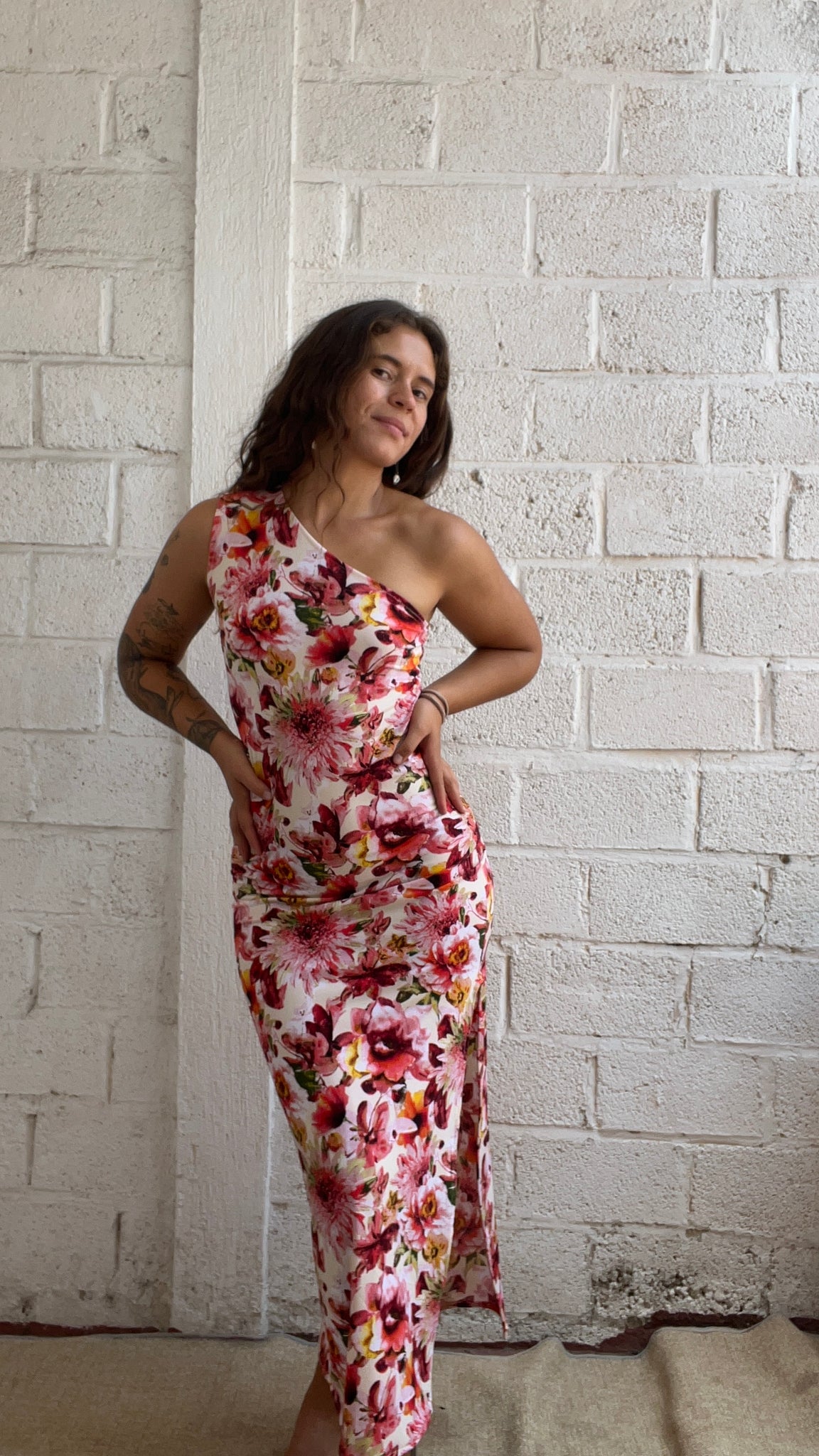 Vestido de licra pegado al cuerpo con tela súper rica y destellos dorados, pierna abierta y manga de un solo hombro. Hermoso para estailearlo casual o incluso para una boda 🌀🙌🏼